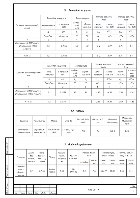 водопровода (при его расположении в тепловом пункте); - тип водоподогревателей, площадь поверхности их нагрева, число