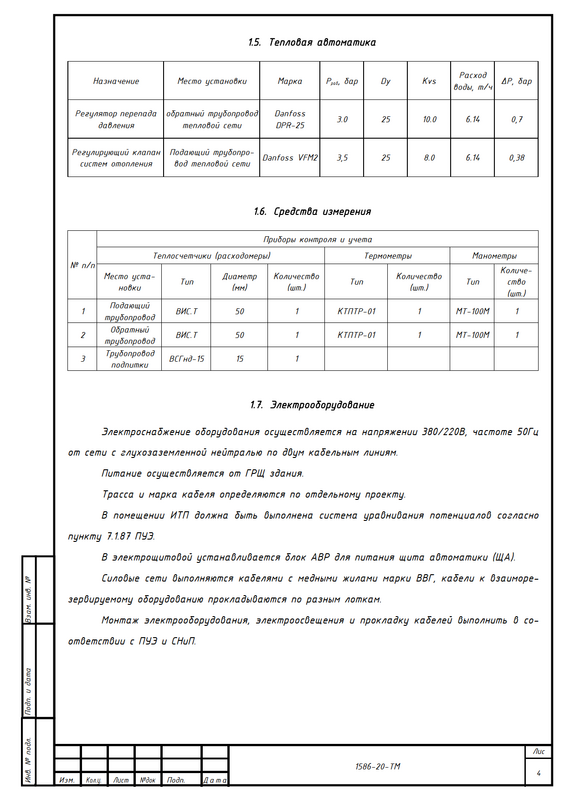 горячего водоснабжения и конденсатных баков; - тип и число приборов регулирования (регуляторы давления на вводе,